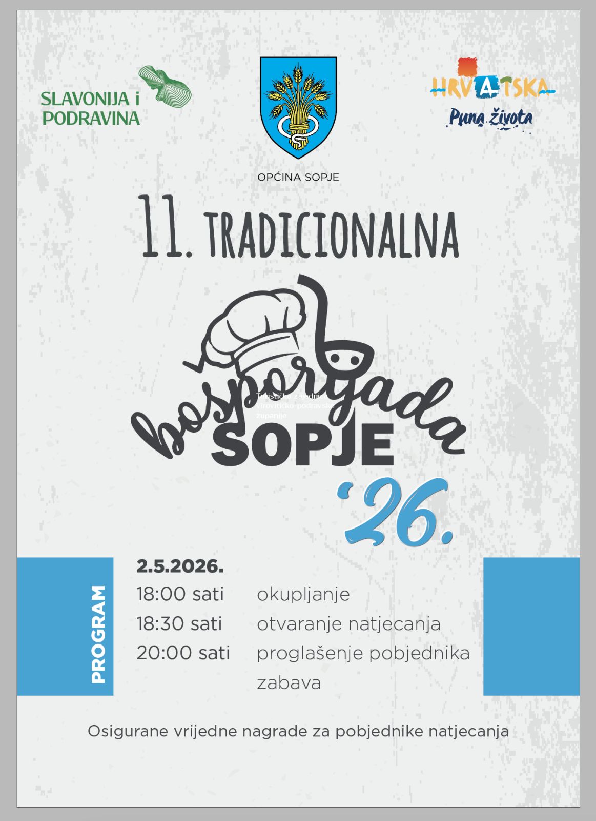 “Bošporijada” je u Sopju postala nezaobilazan dio kulturno-gastronomske ponude i važan događaj koji njeguje duh zajedništva, ali i natjecateljski duh, jer ekipe se trude pripremiti najbolji bošpor prema receptima svojih baka, često uz dodatak tajnih sastojaka i posebnih začina.